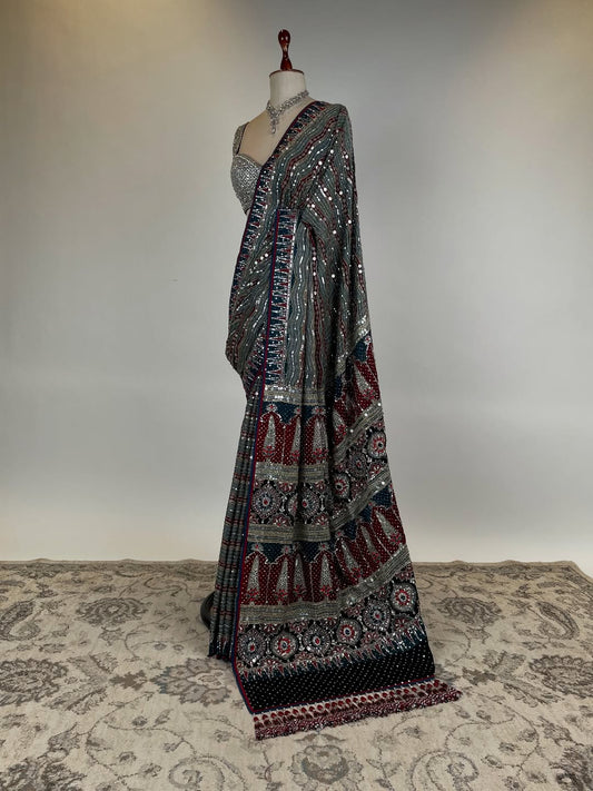 AJRAKH SAREE WITH HEAVY SEQUIN WORK