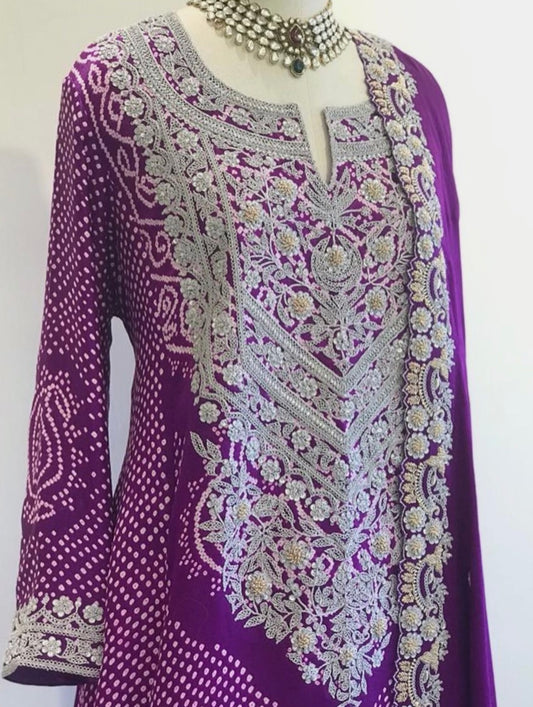 RED BANDHEJ SHARARA JODA CRAFTED WITH ZARDOSI