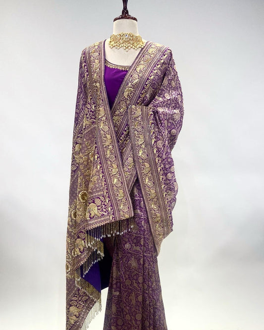DAMPAJ WEAVE HANDLOOM BANARASI SAREE WITH ZARDOSI WORK