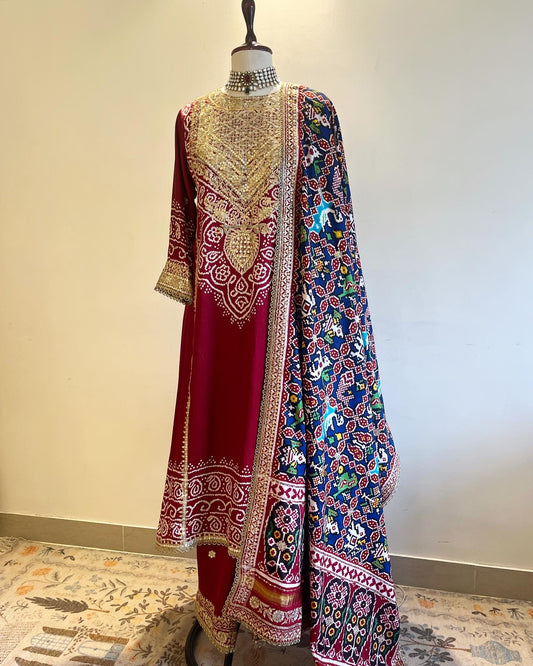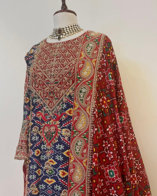 DOUBLE IKAT PATAN PATOLA ENSEMBLE WITH ZARDOSI