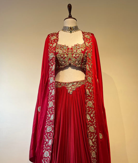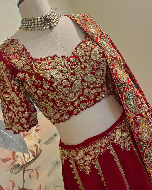 DEEP RED ZARDOSI CUTWORK LEHENGA