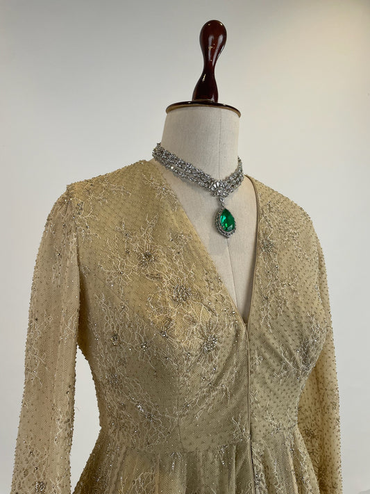 CHAMPAGNE GOLD FRENCH CHANTILLY SHARARA ENSEMBLE