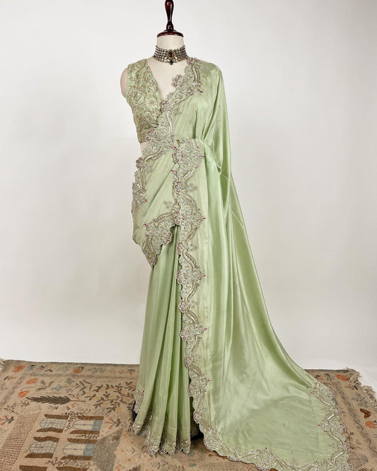 CREPE SAREE WITH SILVER & PANI GOLD ZARDOSI EMBROIDERY