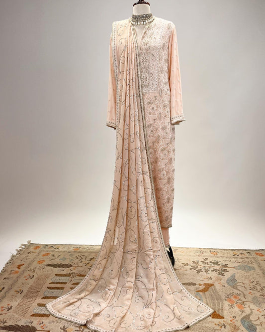 DO TAAR CHIKANKARI ENSEMBLE IN CUTDANA & SEQUIN JAAL DUPATTA