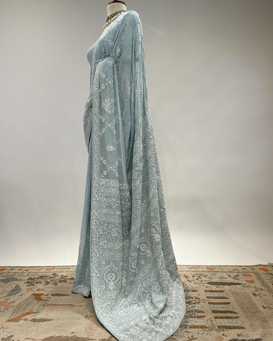 FRENCH HAND CHANTILLY LACE SAREE WITH STONE WORK DETAILING