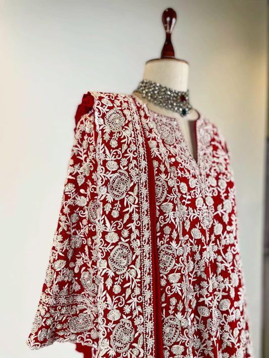 NAVY & RED AABHA KURTA SET IN EK TAAR AARI WORK