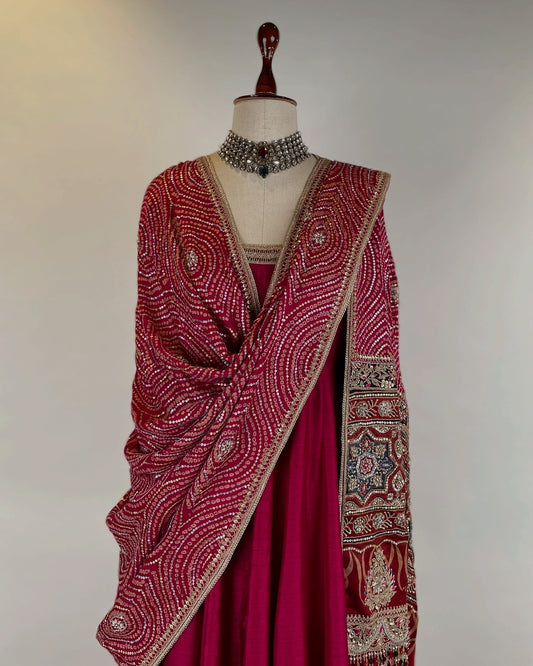 PREDRAPED SHARARA WITH DUPATTA WITH AN IVORY SEQUIN BLOUSE