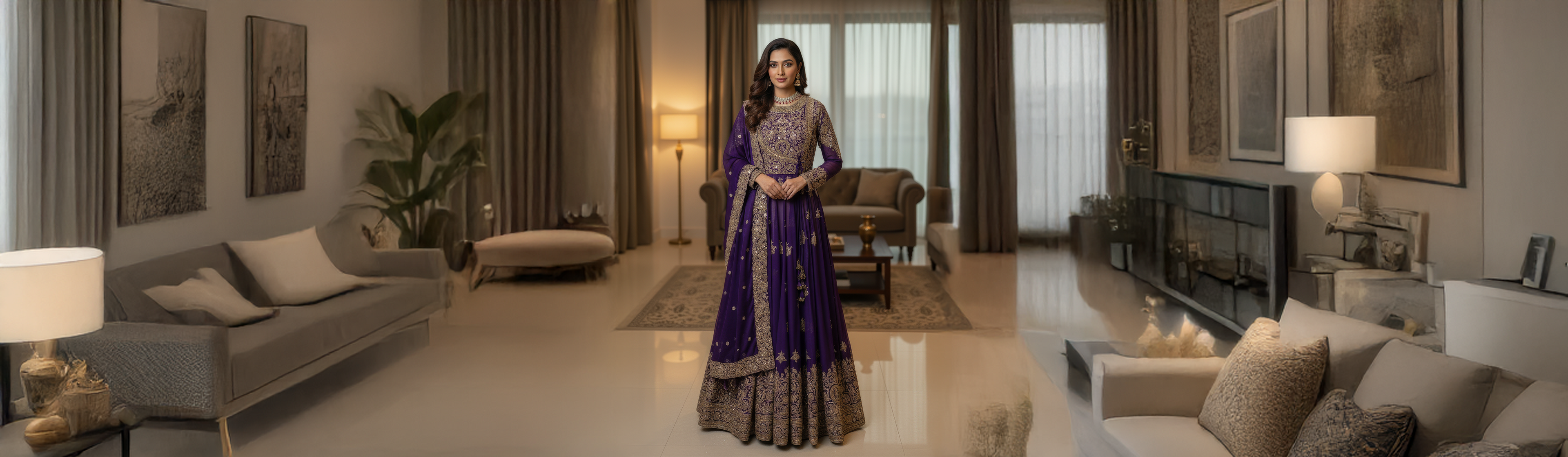 SKY BLUE CHIKANKARI ANARKALI GOWN
