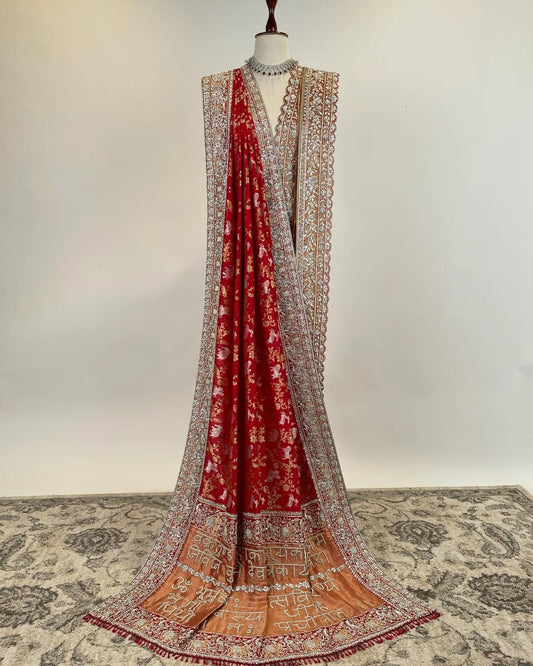KADWA BANARASI GANGA JAMUNA WEAVE LEHENGA IN DABKA SAADI ZARDOSI & MARODI WORK