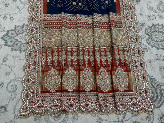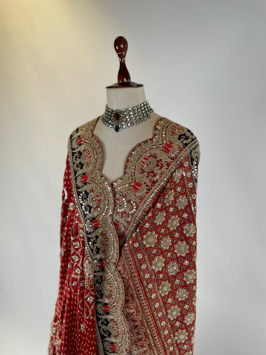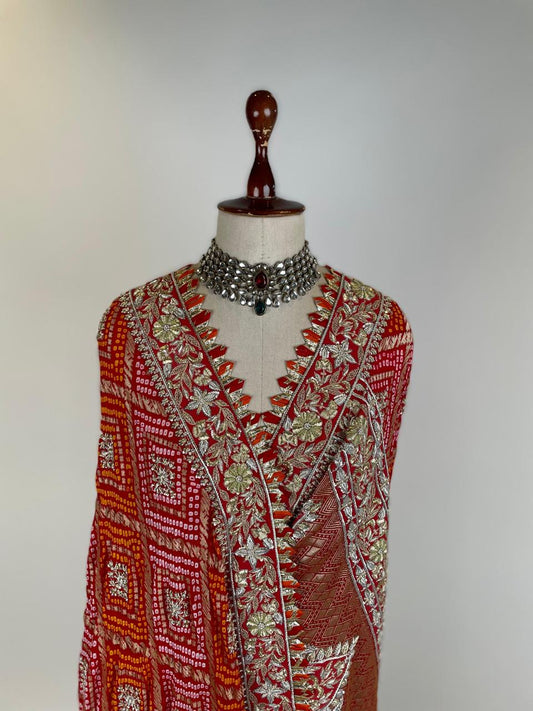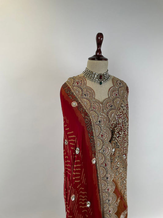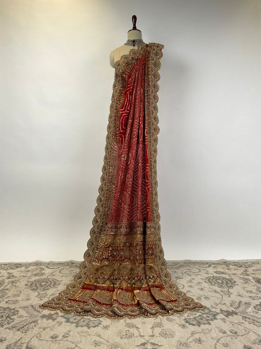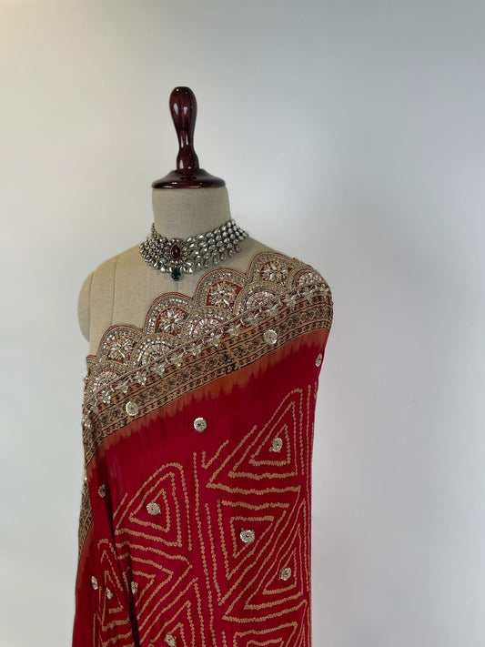 RED ZARDOZI EMBROIDERED BANDHANI ODHNA