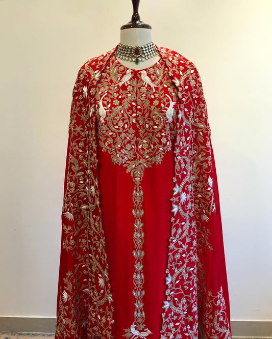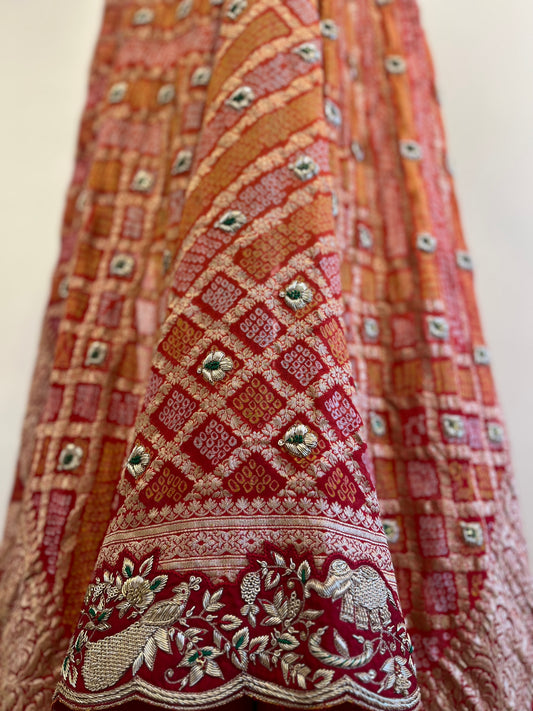 IVORY & RED ZARDOSI PANETAR LEHENGA
