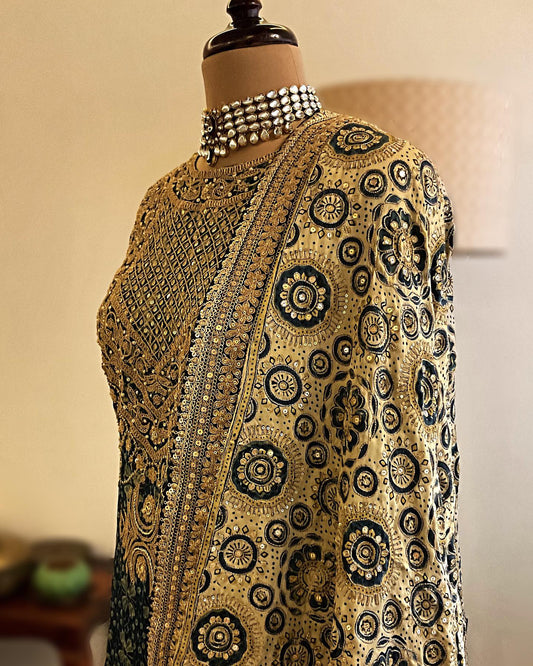 AJRAKH ON AJRAKH WITH ZARI WORK KURTA SET