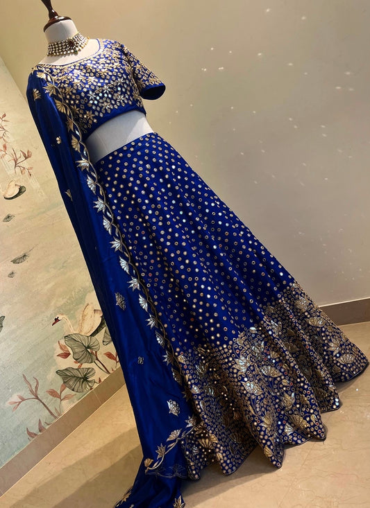 ROYAL BLUE KAMAL TALAI LEHENGA IN MIRROR & GOTA WORK