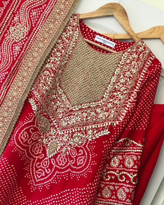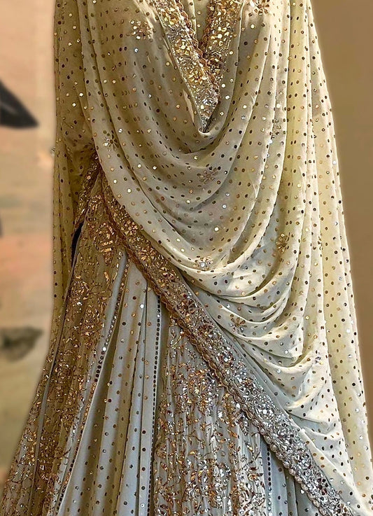 OFF WHITE PANETAR CHIKANKARI ZARDOSI KASAB & BANDHEJ LEHENGA