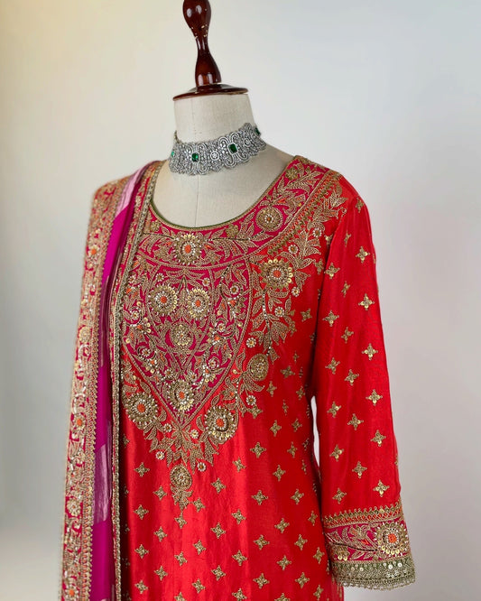 CHANDERI BLOCK PRINTED UMRAO STYLE ANARKALI SET