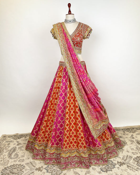 PINK LEHENGA WITH WHITE RESHAM WORK AND 2 DUPATTAS