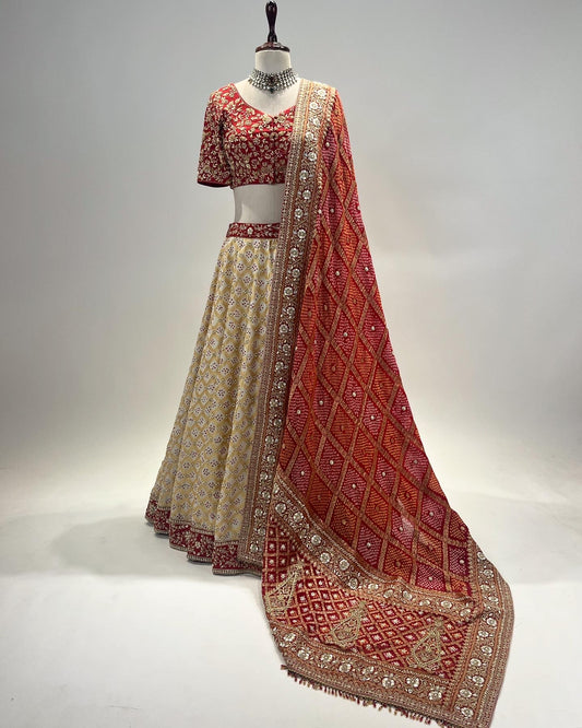 DO TAAR CHIKANKARI LEHENGA WITH EK TAAR GARA & SEQUIN DETAIL