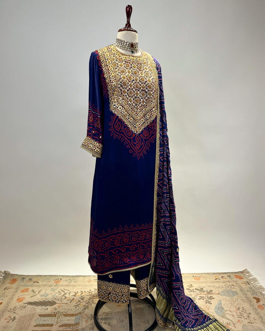 ANTIQUE EK TAAR EMBROIDERY ON BANDHEJ AABHA ENSEMBLE