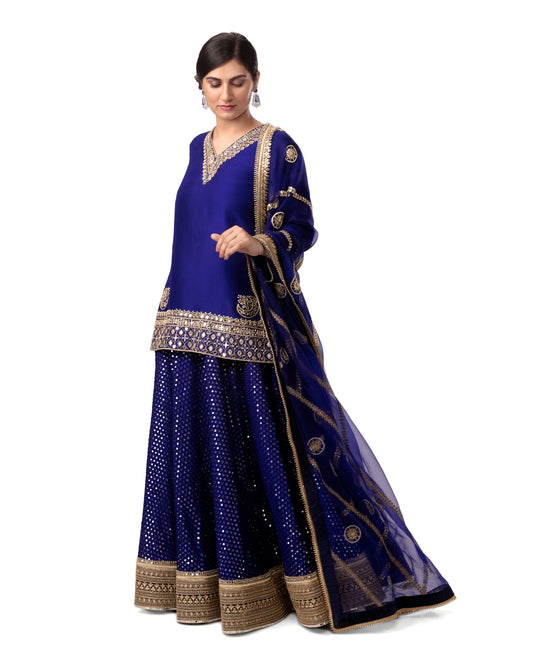 BROCADE SHORT KURTA SET WITH LEHENGA