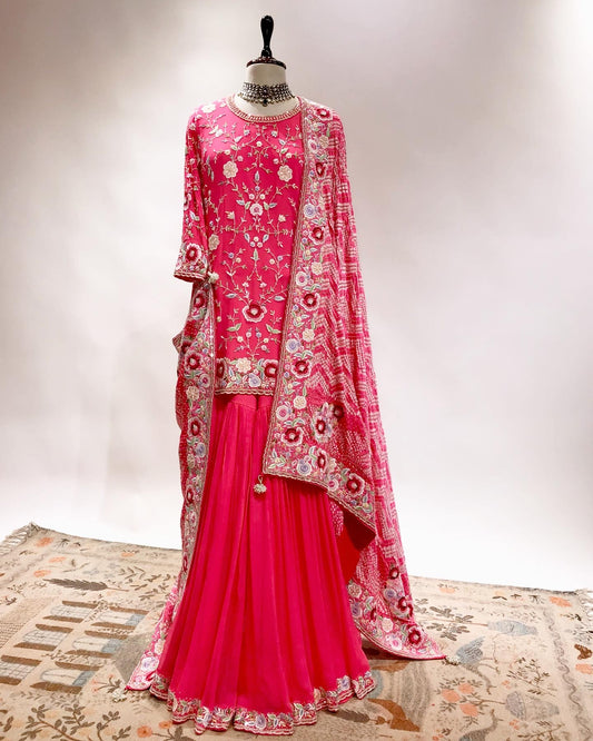 • MARODI & PITTAN WORK SHORT KURTA PAIRED WITH CRUSHED SHARARA